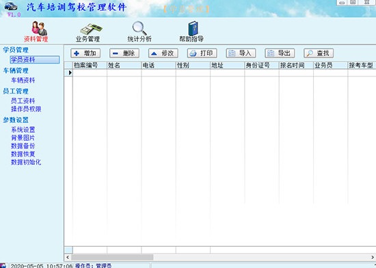 管理包括:员管理、考试管理、车辆管理、财务管理、统计分析、系统设置。