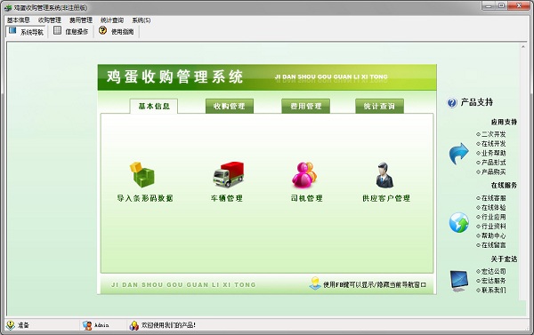 宏达鸡蛋收购管理系统最新版是要款专业为从事收购鸡蛋的商户提供的管理工具,宏达鸡蛋收购管理系统最新版软件还内置许多实用的功能,宏达鸡蛋收购管理系统可以实现了基本信息、收购管理(收购登记、收购查询、出货登记、出货查询)、费用管理、统计查询等方面的全方位管理。