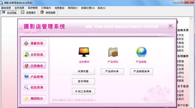 宏达摄影店管理系统最新版是一个专业为摄影店提供的专业化管理工具,宏达摄影店管理系统最新版内置丰富实用的功能,主要支持信息导入导出方便共享的功能,宏达摄影店管理系统还可以灵活对报表进行设计,帮助该行业的人轻松管理摄影店和婚纱店。