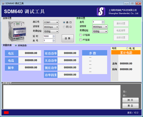 步骤3: 如果你成功连接到了SDM640,软件【设置】按键和【电能清零】按键将被激活。