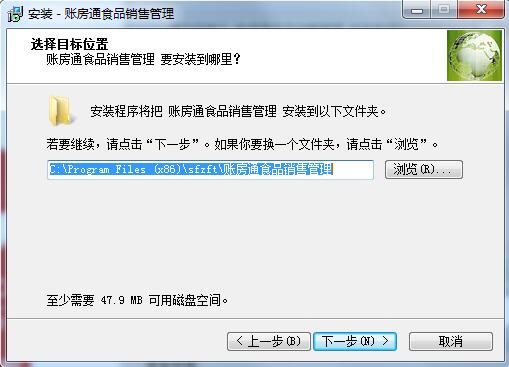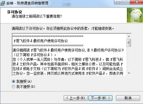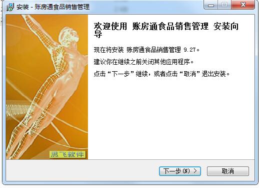 1.在本站下载账房通食品销售管理官方版软件后,解压,运行“EXE.文件”,双击打开,进入安装向导,单击下一步