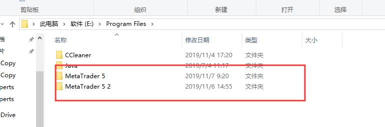 ①假设MT4或MT5的安装目录为E:Program FilesMetaTrader