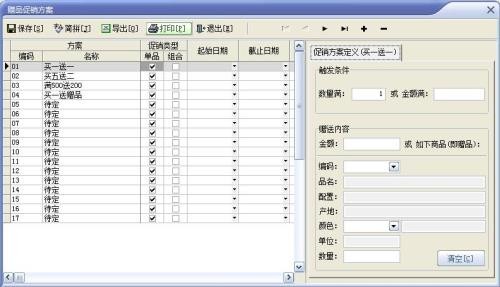 ◆ 促销方式灵活多样,可以单品促销(也就是触发条件只对单一的某个商品),也可以组合促销(触发条件可以是多个商品,也就是说可以设置若干个产品合在一起满意某个条件后,就可以触发促销);既可以根据购买数量实现'满XXX送YYY'或'买A商品送B商品',也可以实现根据消费金额实现'满XXX元送YYY元'或'买A商品送B商品';还可以实现'满XXX或满XXX元,第二件半价';