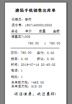◆ 支持POS销售。可以根据需要选配打印机、读卡器、会员卡、条码枪、钱箱、顾客显示屏及小票打印机;可以根据自已喜好设计各种有特性的打印格式。快捷键丰富多样,可以自己定义,完全可以用键盘取代鼠标的操作。销售时可以适时掌握每一个商品的当前库存数,销售成本、销售毛利,可以随时盘点;