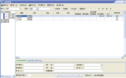 ◆ 可以适时显示往来单位(供货商、经销商、VIP会员、普通客户)的应收帐款、应付帐款、预收帐款、预付帐款;