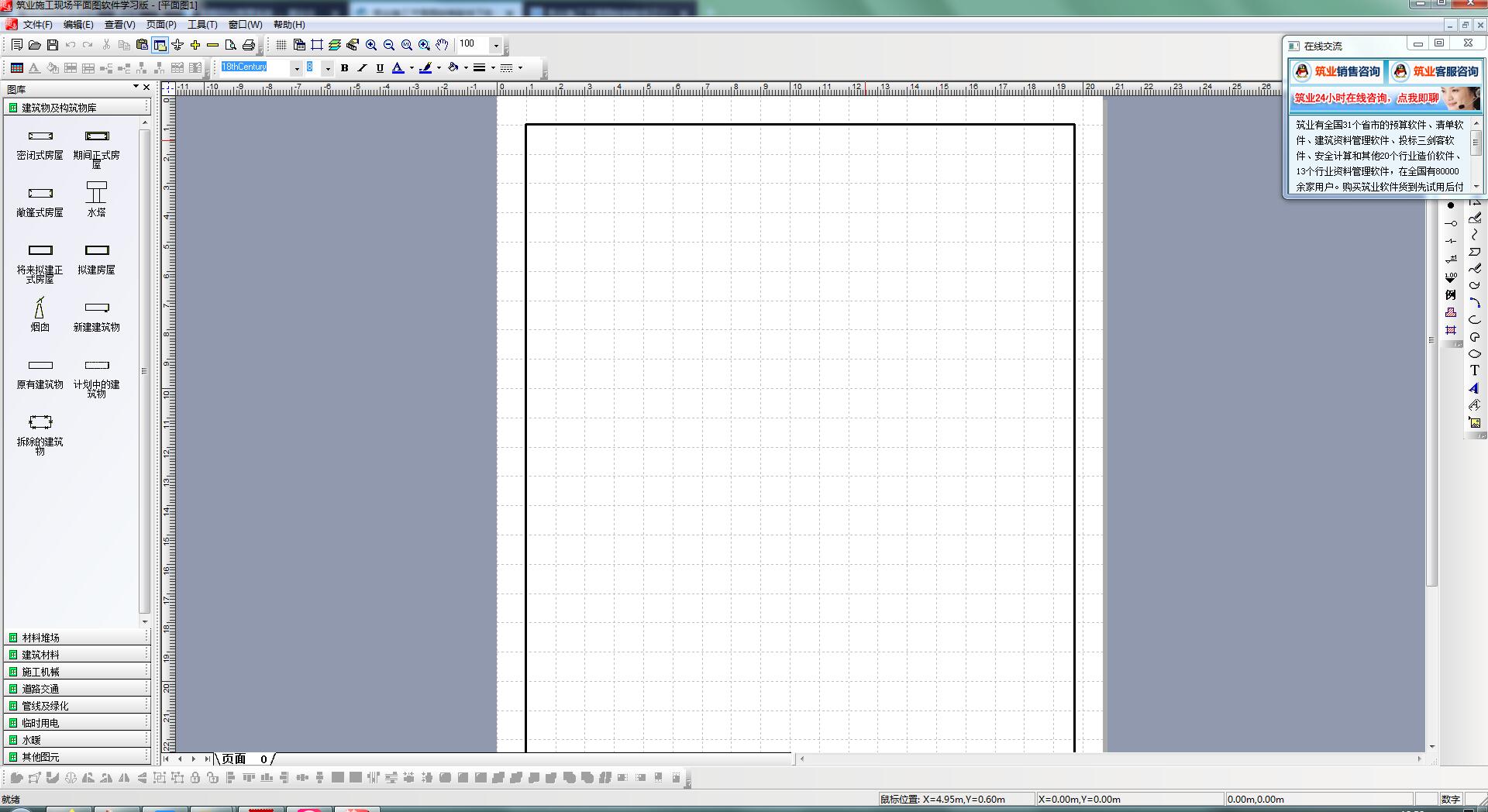 3、点击确定之后即可快速的进入软件的建筑物及构筑物库;