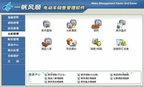 一帆风顺电动车销售管理软件最新版是一款基于电动车销售行业设计打造的管理软件,一帆风顺电动车销售管理软件最新版支持进货、销售出货、仓库库存管理、统计报表管理、财务管理等功能,还提供了财务管理功能,可以清楚显示企业的应收应付帐款情况,及相关费用情况。