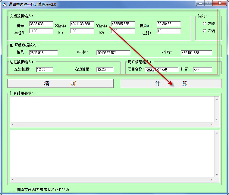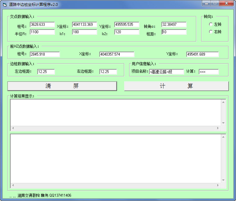 详细用途:中边桩坐标计算,可用来计算不对称的缓和曲线,界面简单,一看就会,易于操作!
