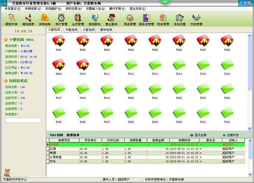 天意娱乐行业管理系统最新版是一款功能丰富的管理软件,天意娱乐行业管理系统最新版界面美观大方,功能出众实用,为广大用户提供了来宾登记,收银结算,系统维护,操作手册等功能模块,此外,通过天意娱乐行业管理系统官方版大家还可以进行预定管理,会员管理,短信群发,营业管理,服务生管理,财务管理等功能。