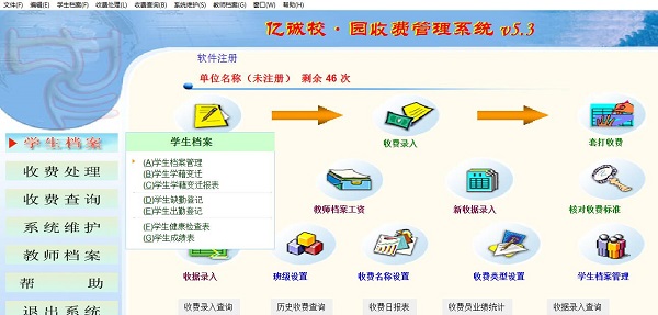 学生档案:学生档案管理、学生学藉变迁、学生学藉变迁报表、学生缺勤登记、学生出勤登记、学生健康检查表、学生成绩表