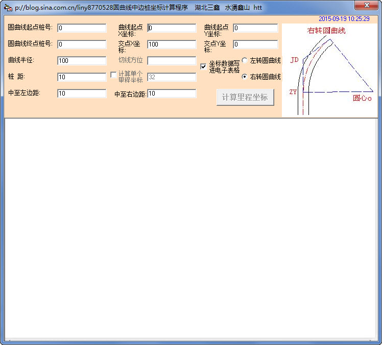 圆曲线中边桩坐标计算程序最新版是一款十分优秀和功能出众的圆曲线中边桩坐标计算工具,圆曲线中边桩坐标计算程序最新版可计算圆曲线带有缓和曲线中、边桩坐标及切线方位角,若只需计算圆曲线则缓和曲线输入0即可,也是一个公路,铁路圆曲线中边桩坐标计算程序,可以根据曲线段——直线、圆曲线;率半径)及里程边距或坐标,对该曲线段范围内任意里,线任意里程中边桩坐标进行正反算。