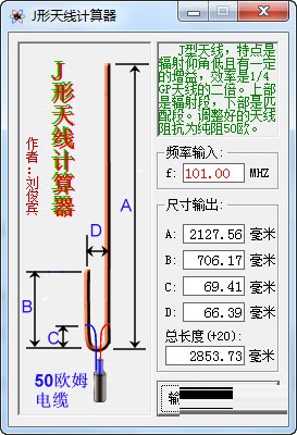 J型天线计算器最新版又叫波兰人天线,其特点是辐射仰角低且有一定的增益,效率是1/4 GP天线的二倍。J型天线上边的部分是辐射段,下边的部分是匹配段。调整好的J型天线的阻抗为纯阻50欧,可直接与50Ω同轴电缆连接。由于其取材容易制作简单,得到了许多HAM的喜欢。