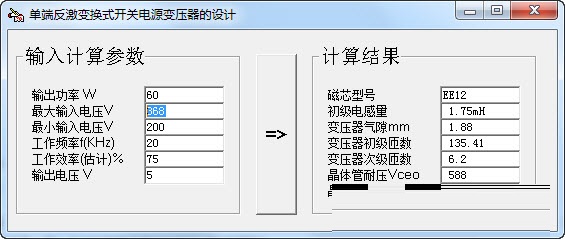 单端反激变换式开关电源变压器设计官方版是一款使用起来十分简单便捷的计算开关变压器感值的软件,单端反激变换式开关电源变压器设计官方版拥有直观的操作界面和丰富的功能,程序只要输入条件项目参数,电感和圈数可自动计算出来,然后在根据计算的参数作为参考调整。