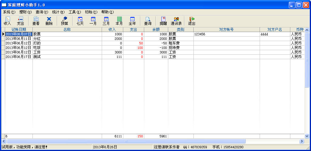家庭理财小助手中文版是一款使用起来非常简单便捷的家庭理财记帐软件,家庭理财小助手中文版功能相当强劲实用,还具有安装方便、操作简单、功能实用等优点,并且软件中统计分析功能强大,简便实用,让您轻轻松松掌握家庭帐目收支动向。该软件还集成了日记本、通讯录和事务提醒功能,同时也是一款很好的门头、家庭理财助手软件。
