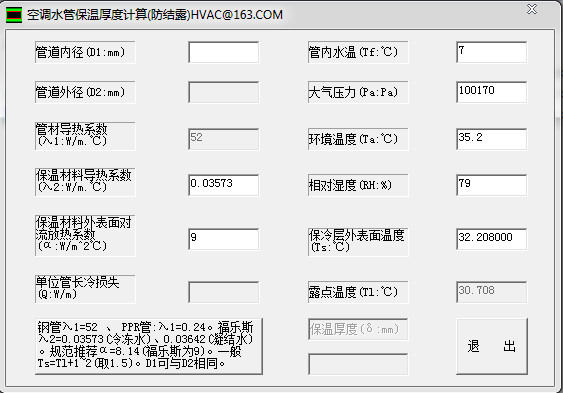 空调水管保温厚度计算程序正式版是一款十分优秀且功能出众的空调冷冻水管和冷凝水管保温厚度计算软件,空调水管保温厚度计算程序正式版还可以快速计算空调水管的保温厚度,是一款不可多得的好软件,方便实用的小工具软件只有防结露的厚度计算。