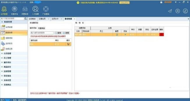 系统收银:开单预结、会员收银、散客收银、店内收支、收银记录、挂账待结