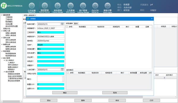 通用云ERP管理系统正式版是一款功能相当全面实用的ERP管理软件,通用云ERP管理系统正式版内置直观的操作界面和一些强大的功能,拥有七大业务版块,支持业务跟踪,支持员工管理,办公OA,客户管理,会议通知,工作流设置等功能。