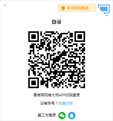 1、网维大师集中控制台官方版支持账号密码、手机验证码、第三方(微信、QQ)登录和网维大师APP扫码等登录方式