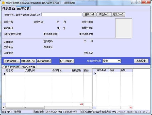 追风会员管理系统官方版是一款界面友好、简单易用的通用型会员管理软件,该软件支持折扣卡、储值卡、计次卡及具备折扣、计次及储值一体的混合卡。系统支持读卡器、条码枪、POS打印机、普通打印机等等硬件设备。软件可广泛适合于美容美发、沐足保健、化妆品、餐饮酒店、咖啡馆、酒吧、洗衣店、音像店、商业零售、小型超市便利店、汽车美容、汽车维修等行业。