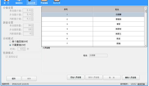 5、系统设置包括了分值设置、题量设置、计时模式、答题模式的选择;