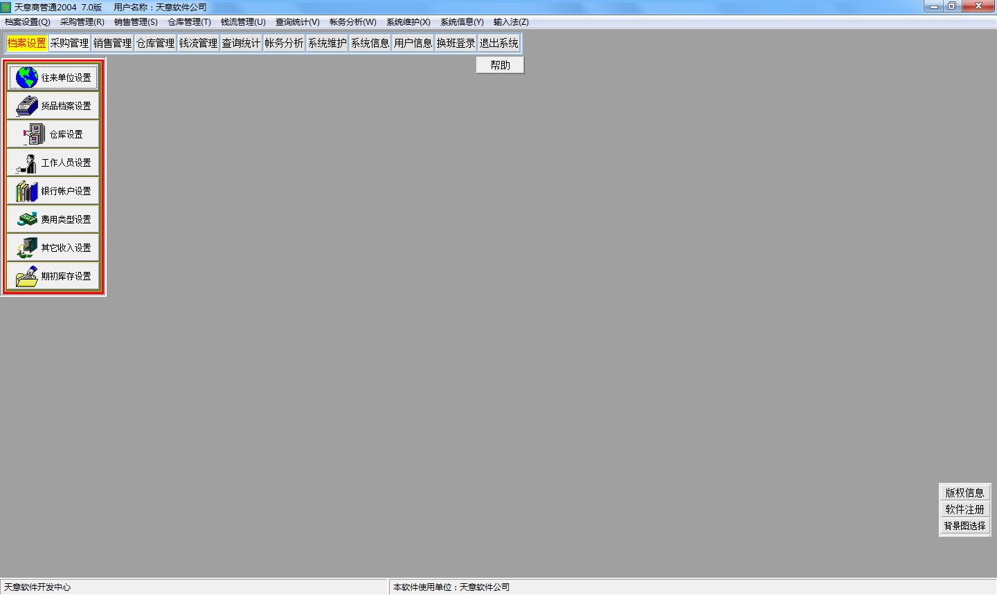 天意商管通管理系统正式版是一套通用性极强企业进销存管理系统,软件囊括了企业进销存管理的全过程。软件适用于食品、服装、保健品、电子、贸易、物资、化妆品、电器等工业、商业、贸易领域的企业。产品与客户结构图化管理,软件覆盖货物进、出、退、调、盘点、销售等所有环节,软件支持仓库管理、销售管理、钱流管理。软件提供完备的帐务系统,月记帐、日记帐,提供多种综合查询及统计报表功能、软件提供多种日报表、月报表,多方位为企业经营决策提供服务。