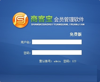 2、安装完成后启动商客宝会员管理系统,默认账号admin,默认密码123