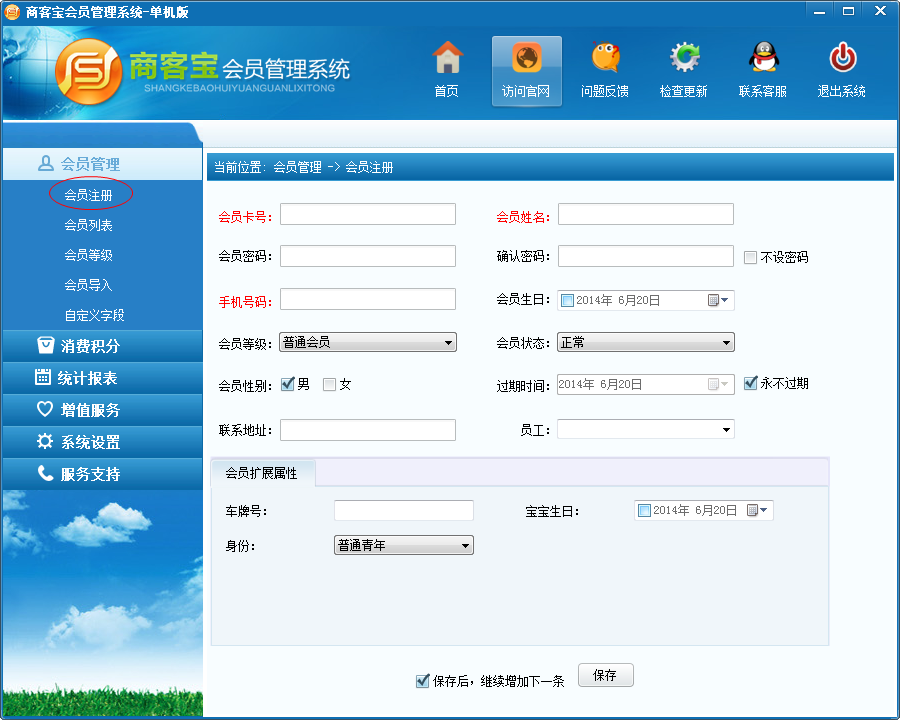 3、会员管理列表中包含了多个会员管理功能,点击【会员注册】可以添加新会员