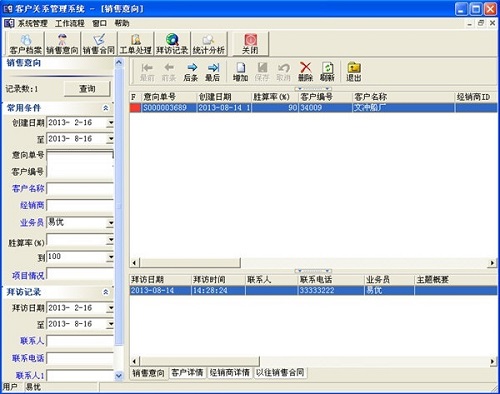 客户档案:方便快速的客户资料录入与检索,检索分为模糊和精确等多种模式