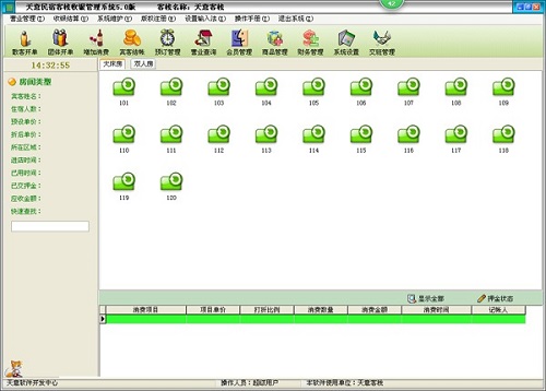 点单消费→增加消费:客人在消费过程中所消费的所有项目均要进行入帐处理,以便在客人离店时自动计算消费额。客人的消费明细便是在此入帐。
