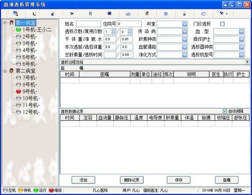 血液透析管理系统官方版是一款非常适合透析室医务人员使用的管理工具,血液透析管理系统官方版能够帮助大家轻松快捷的解决血液透析过程中主要参数的设置、记录。不仅如此,通过血液透析管理系统官方版用户可以自动安排透析时间,透析机器,自动计算患者相关数值,完成血液透析费用,透析患者治疗、病历的管理。