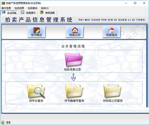 1.拍卖产品信息管理系统最新版基本信息:货币单位、拍卖公司、拍卖地点;
