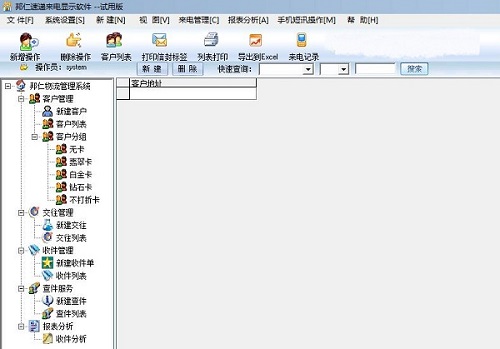 邦仁速递来电显示软件官方版是一款功能全面的速递来电显示管理软件。邦仁速递来电显示软件官方版包含了新建客户、客户列表、客户分组、交往管理、新建交往、交往列表、会员管理、会员卡办理、新建收件单、收件列表、收件分析以及查件列表等主要功能。邦仁速递来电显示软件可以随时备份系统中的重要数据。
