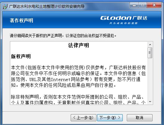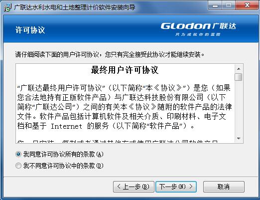 2、点击下一步出现广联达水利水电计价软件的协议,阅读一下,然后点击我接受