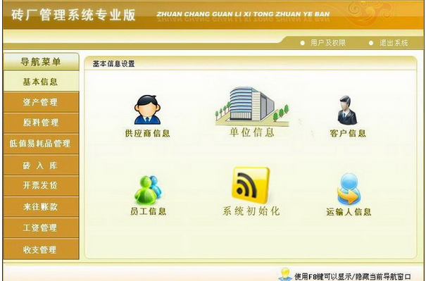 1.基本信息:单位信息,供应商信息,客户信息,员工信息,运输人信息;