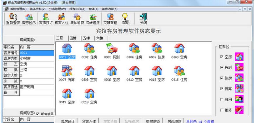 1、佳宜宾馆客房管理软件电脑版支持自定义楼层、房间、房型及房费 ,方便对客房进行完善的管理。