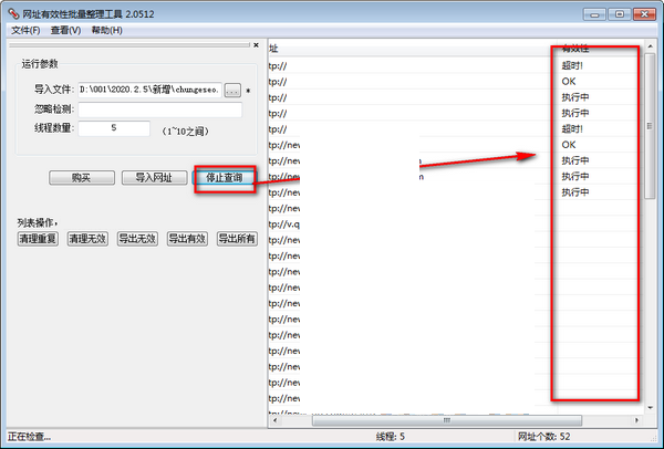 网址有效性批量整理工具最新版绿色免费,支持批量导入批量检查,批量导出错误网站。