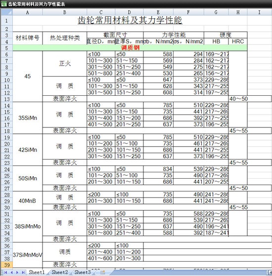 齿轮常用材料及其力学性能表官方版表格基于Excel设计制作,可以方便快捷的查询所选材料的力学性能。
