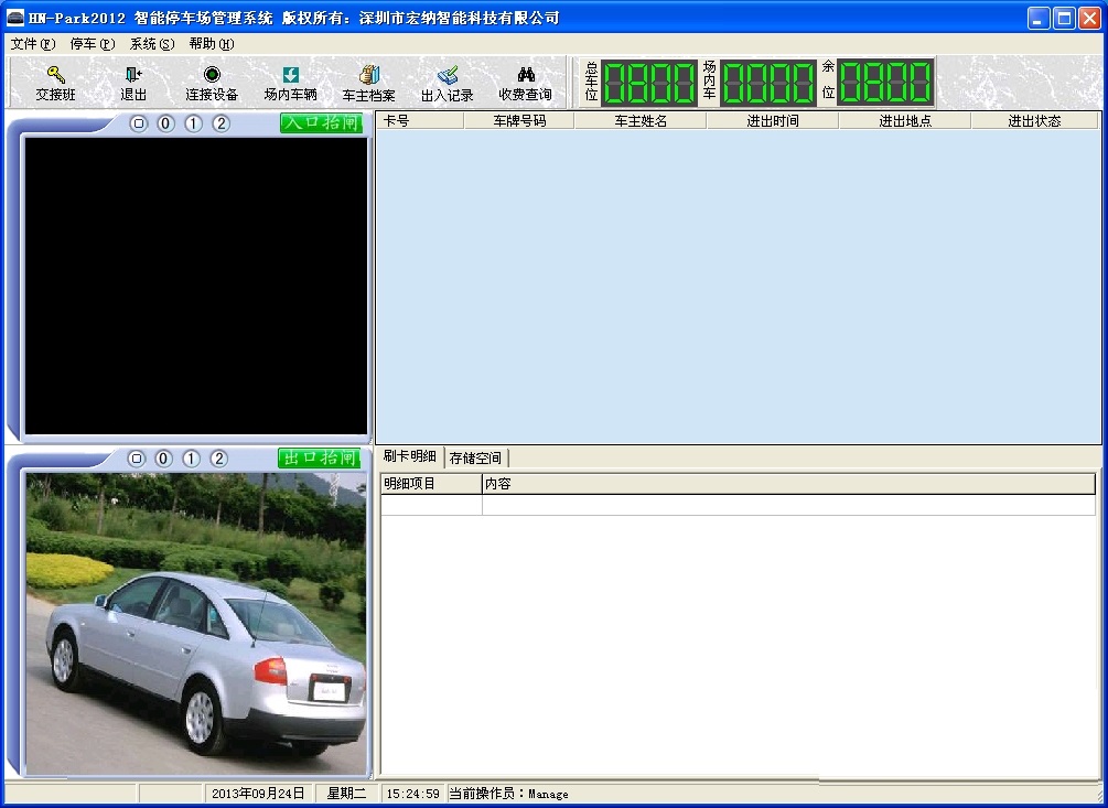 5、显示总车位、场内车位和剩余车位数量;