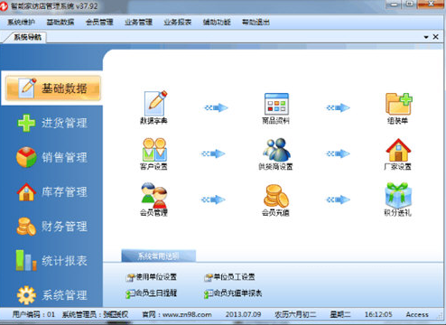 基本设置:商品信息,供货商,客户,员工,仓库等基本参数的设置。