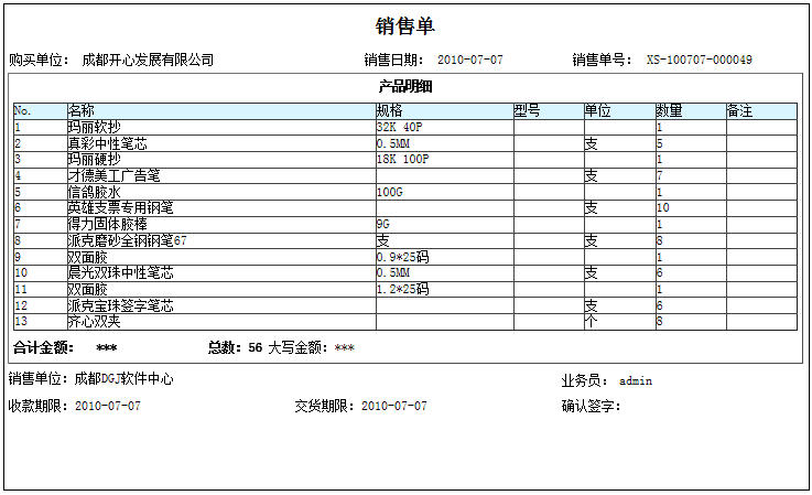销售单、报价单管理,提供丰富的查询统计功能,并且支持销售单的自定义打印。
