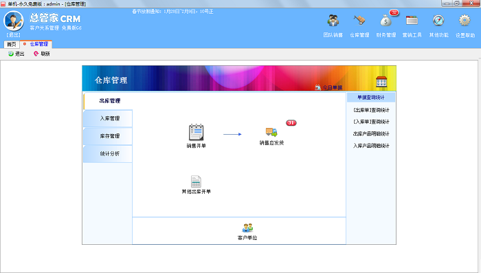 总管家CRM系统最新版采用图形导航,科学规范的业务流程设计精巧,界面简洁,统计图形报表完善,功能完备。总管家CRM系统最新版适合个人使用,功能上没有任何限制。,即使不懂软件的人,只要会点鼠标按照提示就能使用,真的是办公客户管理的首选。