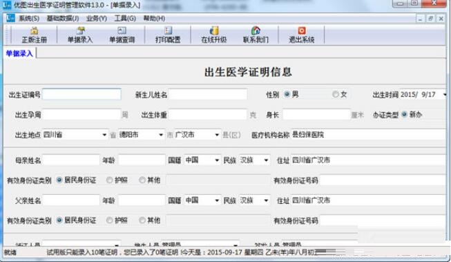 9、支持批量打印出生证明功能;