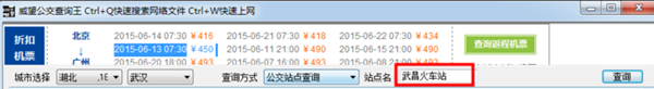 查询的结果,当两个站点有直达车的时候会显示所有直达车次,并显示总共经过的站点数,如果没有直达车次,本软件会给出一次转乘的线路,并提供多项选择,让您选择最佳出行方式。