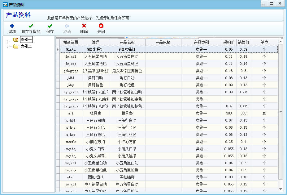 进行产品资料设置