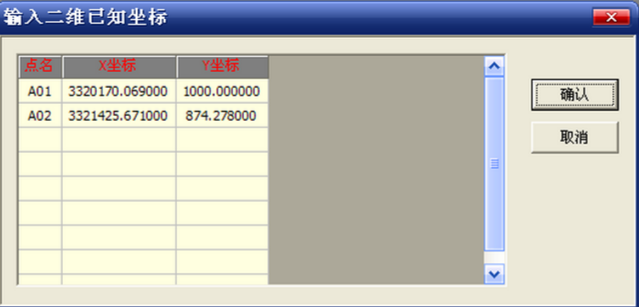 表格中各列的宽度可以改变,将鼠标移到表格中各列标题的结合处,按下左键拖动,调节到合适的宽度即可。表格中的行数是不受限制的,输满后将向上滚动,底下弹出新的空白行。表格式输入的数据被保存到文本文件(文件名参见2.1),用户也可直接对相应的文本文件(例如:工程名.