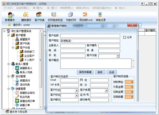 邦仁来电显示客户管理软件电脑版是款适用于很多企业中使用的客户来电信心管理工具。邦仁来电显示客户管理软件电脑版会自动检测来电号码,并弹出客户材料,系统还有来电内容登录和历史来电治理。这款软件很