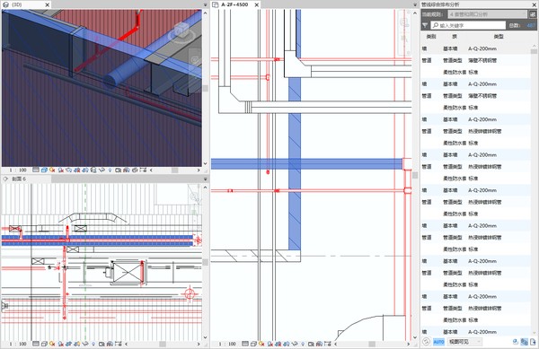 针对分析出的问题,通过平、立、剖、三维视图联动,反查问题时自动剖切,即使大型工程联动响应流畅,让问题识别更清晰、问题调整更住精确。