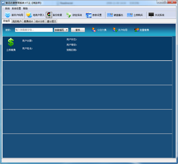 1、实现对日常有线电视收费业务的综合管理,针对不同用户类型、不同地区,不同业务管辖区对收费进行分类管理,包括初装管理,增机管理,移机管理,过户管理,罚停管理,收费管理,注销管理等;