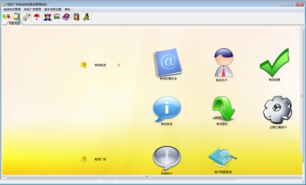 电视广告有线电视集成管理系统官方版是款功能十分丰富且实用性能非常稳定的电视管理软件,且电视广告有线电视集成管理系统主要包括用户及收费管理系统、故障投诉及自动催缴系统、领导查询及辅助管理系统、工程施工管理系统、网络器材管理系统等子系统组成。