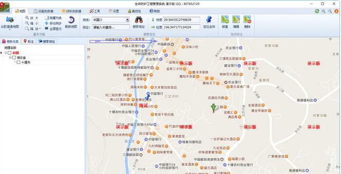 4、支持坐标查询定位,可以输入坐标数值后定位的所查询的位置。